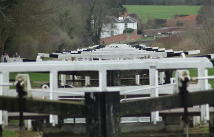 At Lower Foxhangers the first of 7 locks is reached which takes you to the bottom of the Caen Locks.