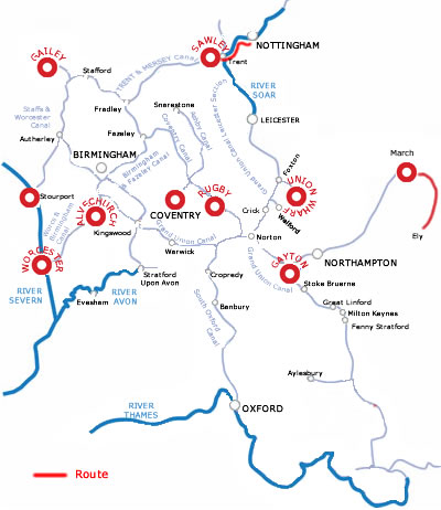 NB: This route has been provided as a guide only. Information may become inaccurate or out of date. You should always check with the marina that the route is possible within your time frame, current weather conditions and canal stoppages etc.