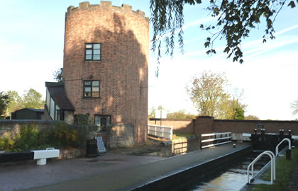 There is an attractive round Toll-keepers watch tower just above the lock, with a small canal shop on the ground floor.