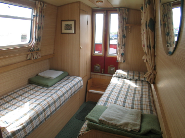 The seating area in the saloon can be converted into a double bed in the evening if required. There is a wardrobe for storing clothes in the front cabin.